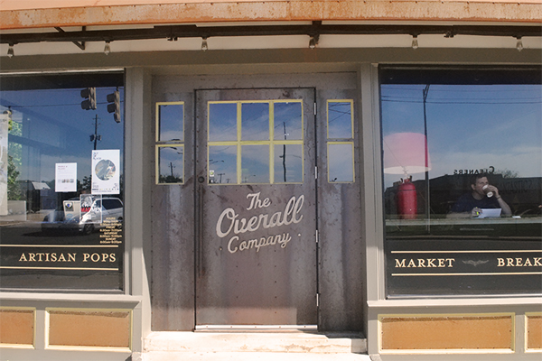 When you live in a city like Kansas City that has a wide range and selection of beautifully designed restaurants, you kind of take for granted that wherever you go, there will be equally nice restaurants abounding in other towns, even if they are small and quaint. Usually that's not the case and when you do run into such a gem, it's always a treat. I loved the look of The Overall Company from our first drive past it: the painted signage outside, the metal doors, the lighting, the fonts they use for the logo, in the windows and on their sandwich board. It was all so nicely done and carefully thought through.